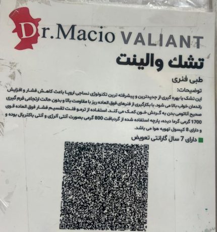 Dr. Macio VALIANT تشک والینت طبی فنری توضیحات: این تشک با بهره گیری از جدیدترین و پیشرفته ترین تکنولوژی نساجی